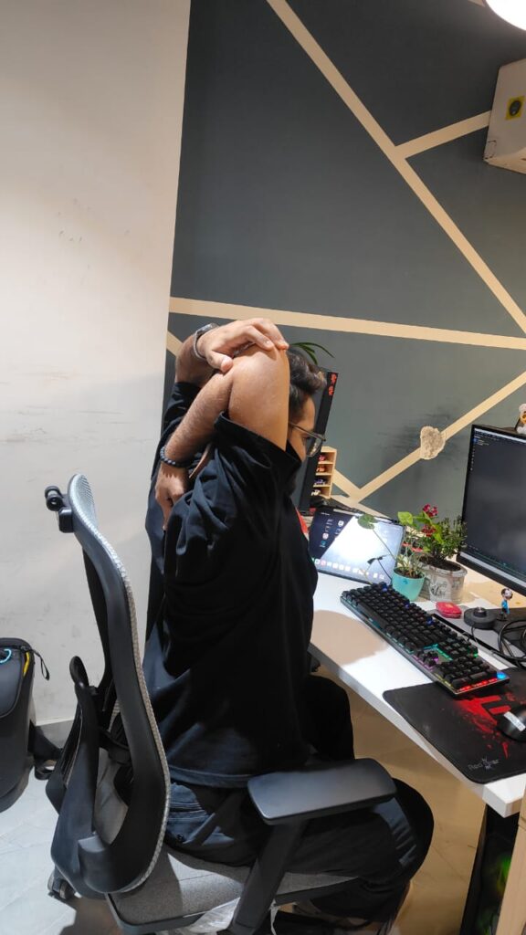Why? Reverses desk posture and reduces headache and shoulder pain.